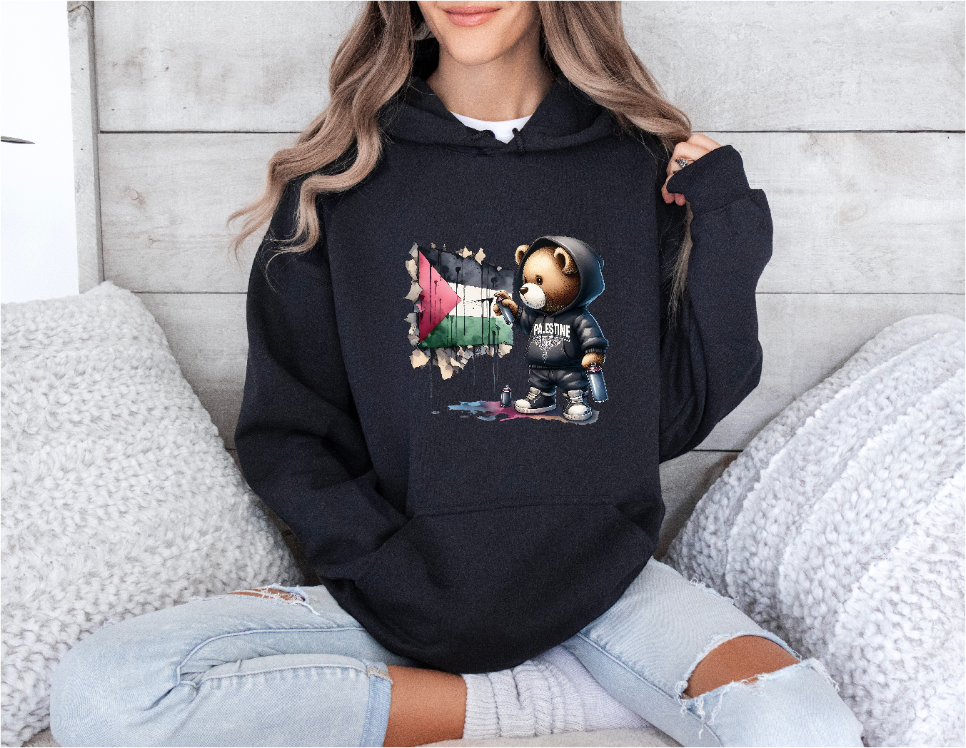 Palestine Spray Paint Black Hoodie